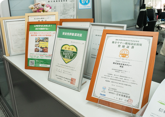 私たちの使命は「安全に、目的地までお送りすること」。 車両の先進安全装備はもちろん、ドライバーの平均年齢53歳(業界平均60歳)という活気と、徹底した教育プログラム、自社整備工場での点検により、最高の「安全・品質」を維持しています。