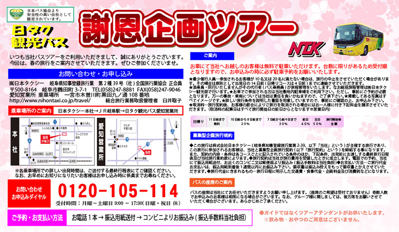 タクシーまたはバス(観光)のご用命はこちらまで