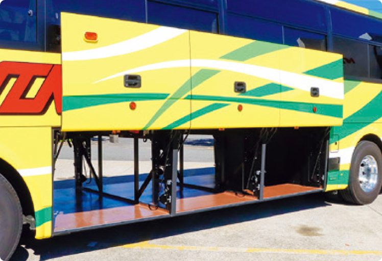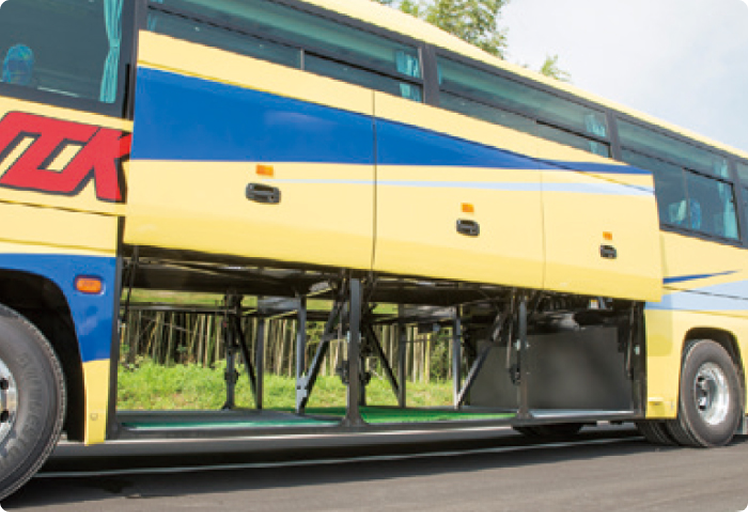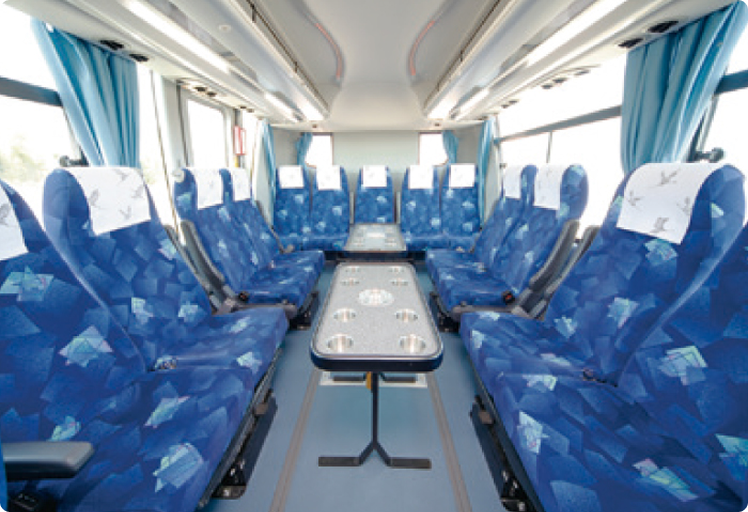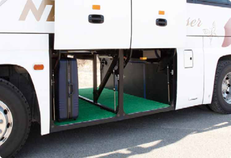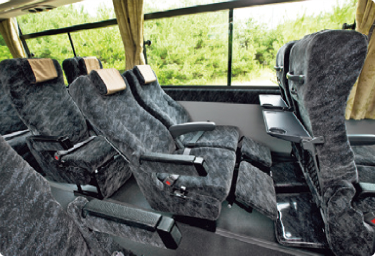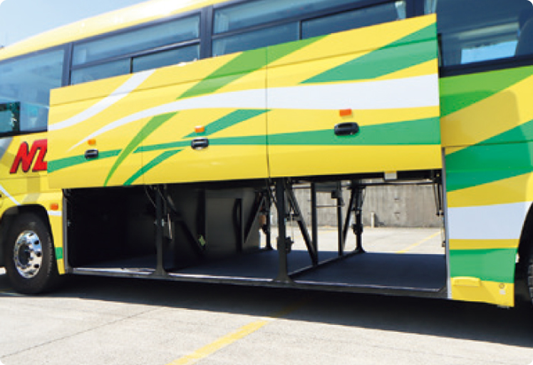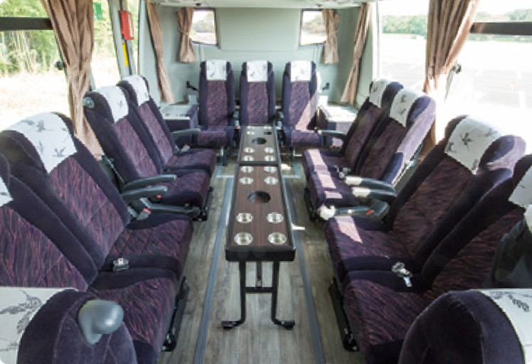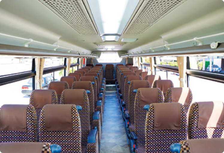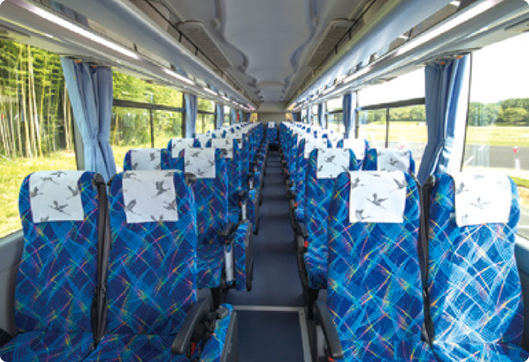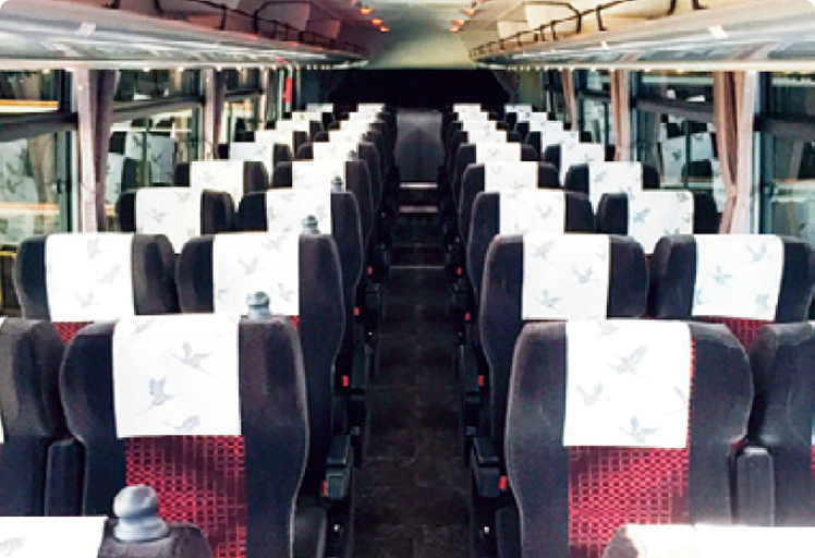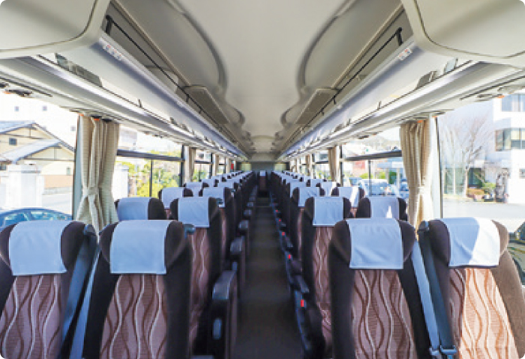 大型観光バスからマイクロバスまで、地域最大級の60台を保有。 「貸切バス安全性評価認定☆☆☆」の最高ランクを獲得した安全体制で、学校行事、企業研修、冠婚葬祭などのあらゆる団体移動を支えます。