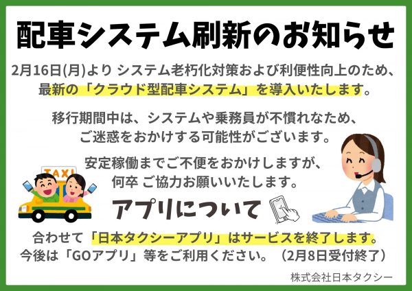 配車システム刷新のお知らせ